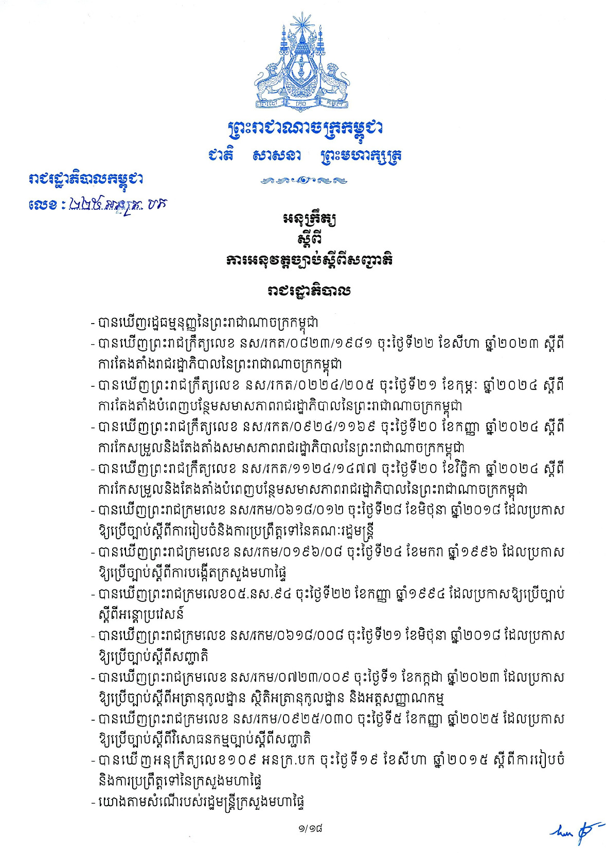 • ប្រភេទ៖ អនុក្រឹត្យ