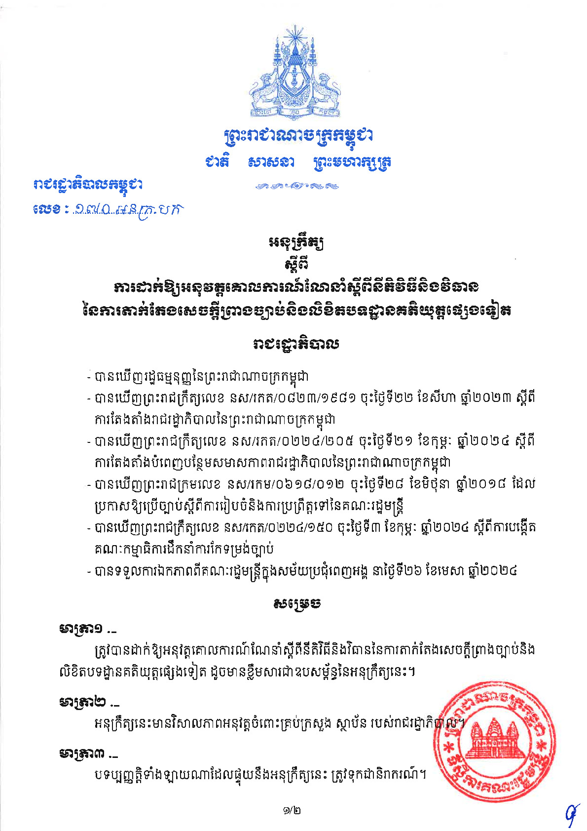 • ប្រភេទ៖ អនុក្រឹត្យ