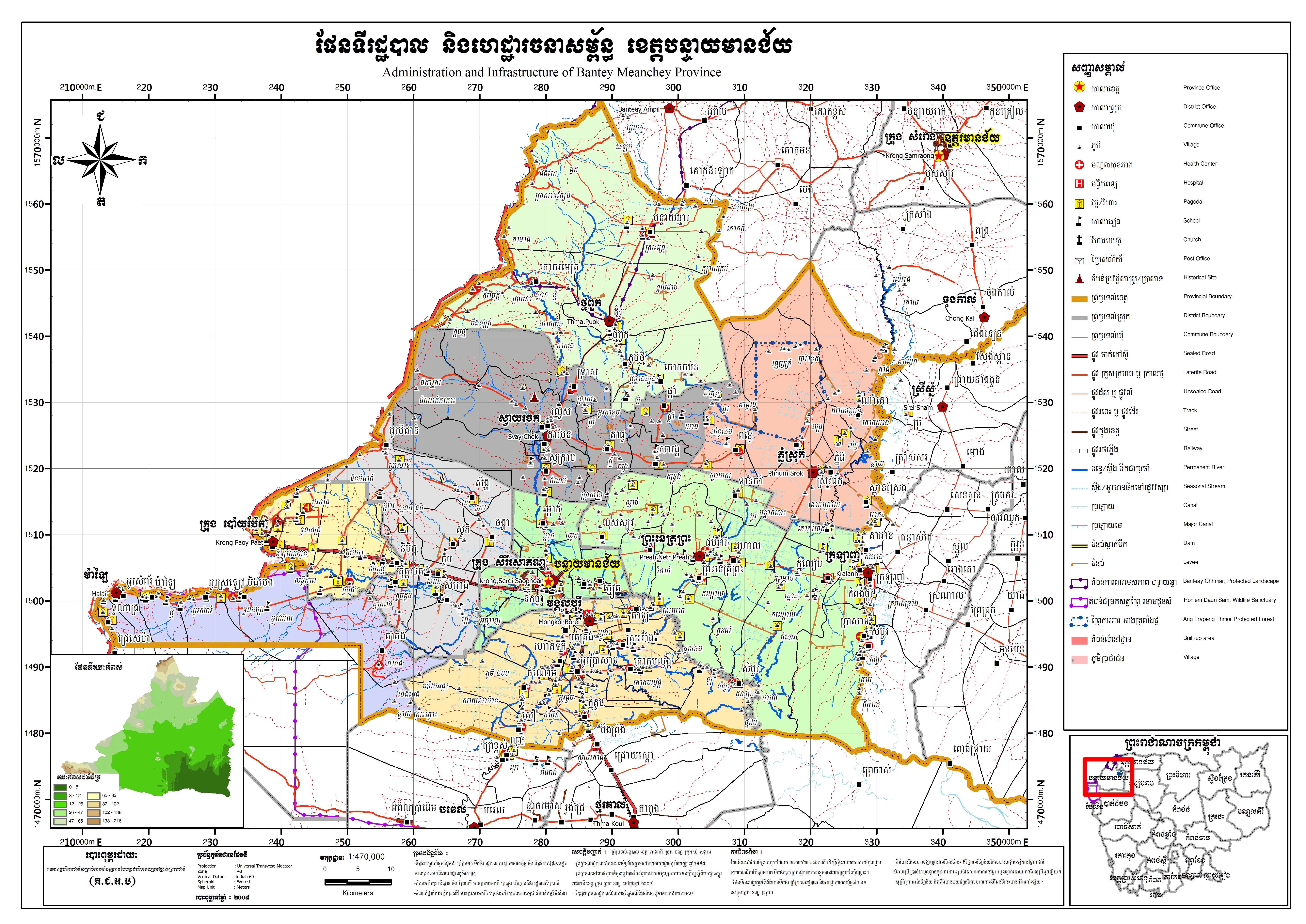 ផែនទីរដ្ឋបាល និងហេដ្ឋារចនាសម្ព័ន្ធ ខេត្តបន្ទាយមានជ័យ