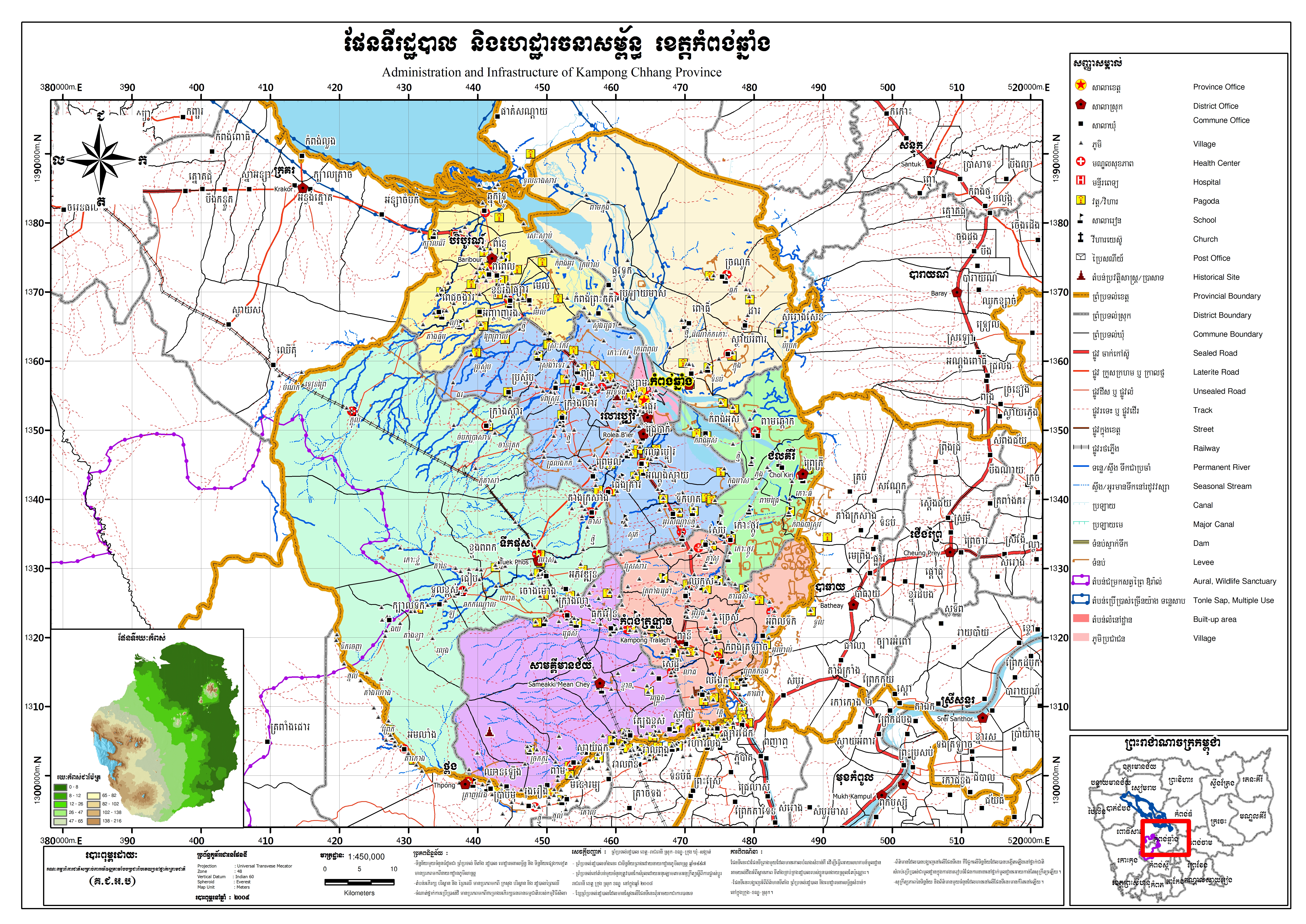 ផែនទីរដ្ឋបាល និងហេដ្ឋារចនាសម្ព័ន្ធ ខេត្តកំពង់ឆ្នាំង