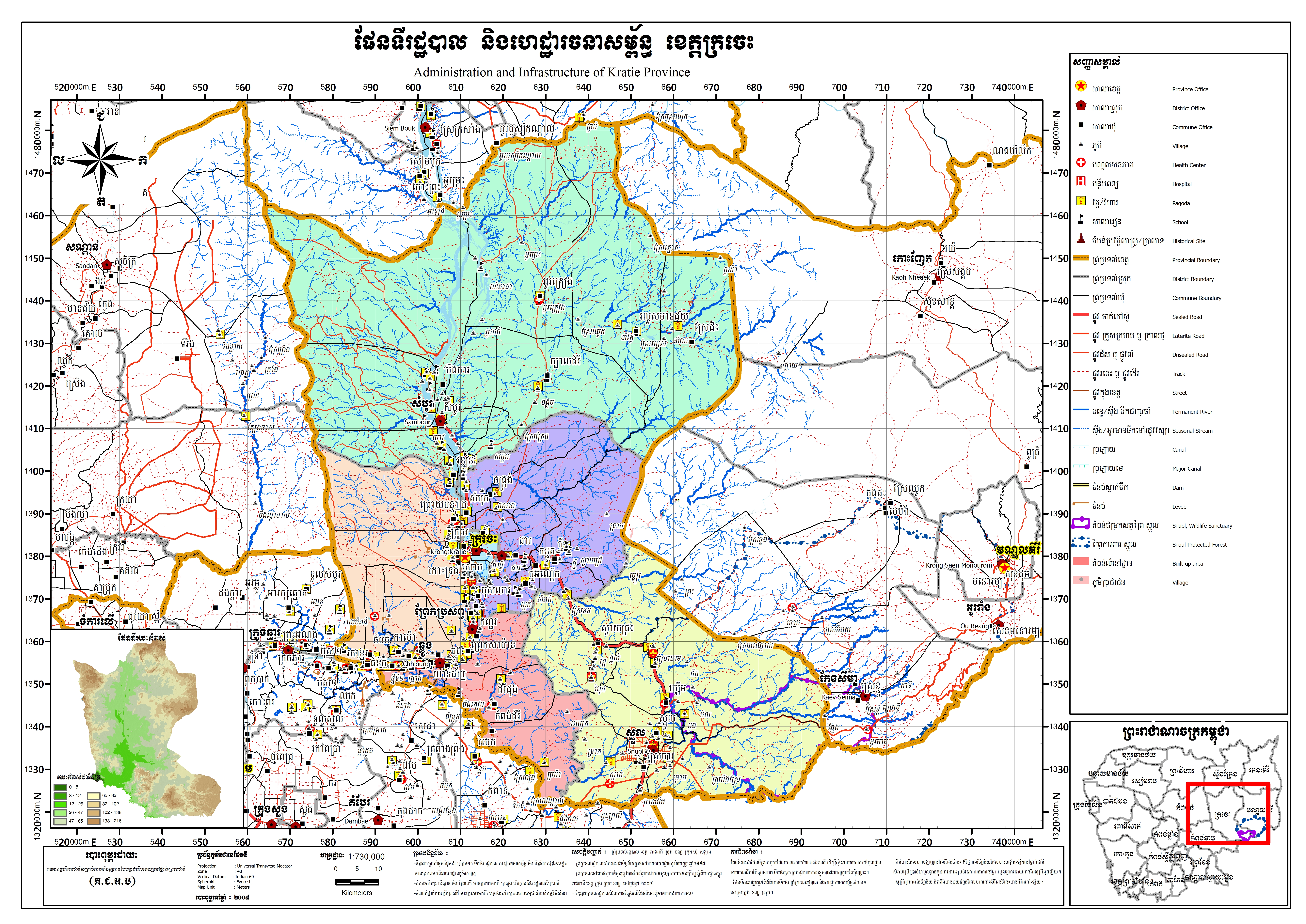 ផែនទីរដ្ឋបាល និងហេដ្ឋារចនាសម្ព័ន្ធ ខេត្តក្រចេះ