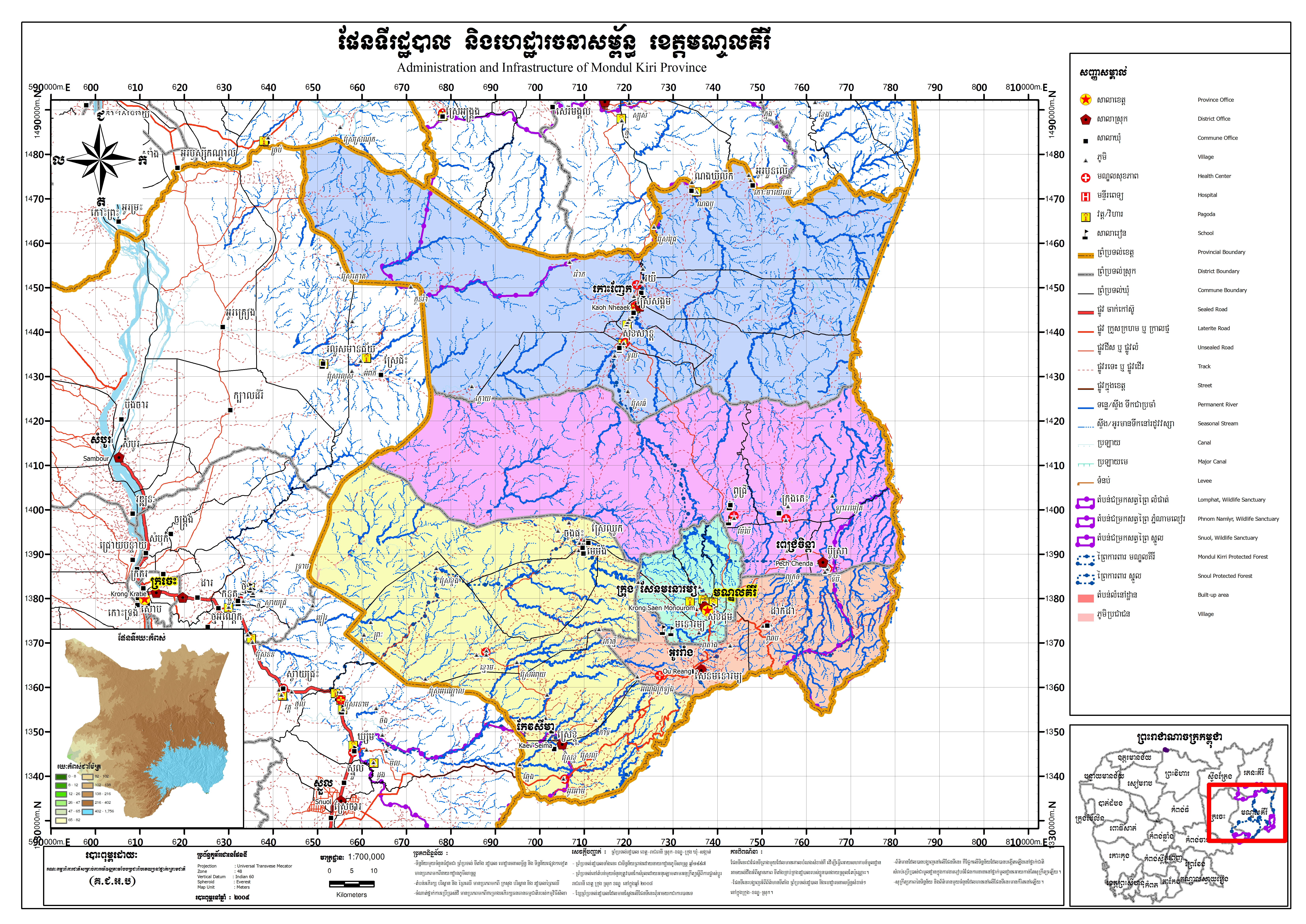 ផែនទីរដ្ឋបាល និងហេដ្ឋារចនាសម្ព័ន្ធ ខេត្តមណ្ឌលគីរី