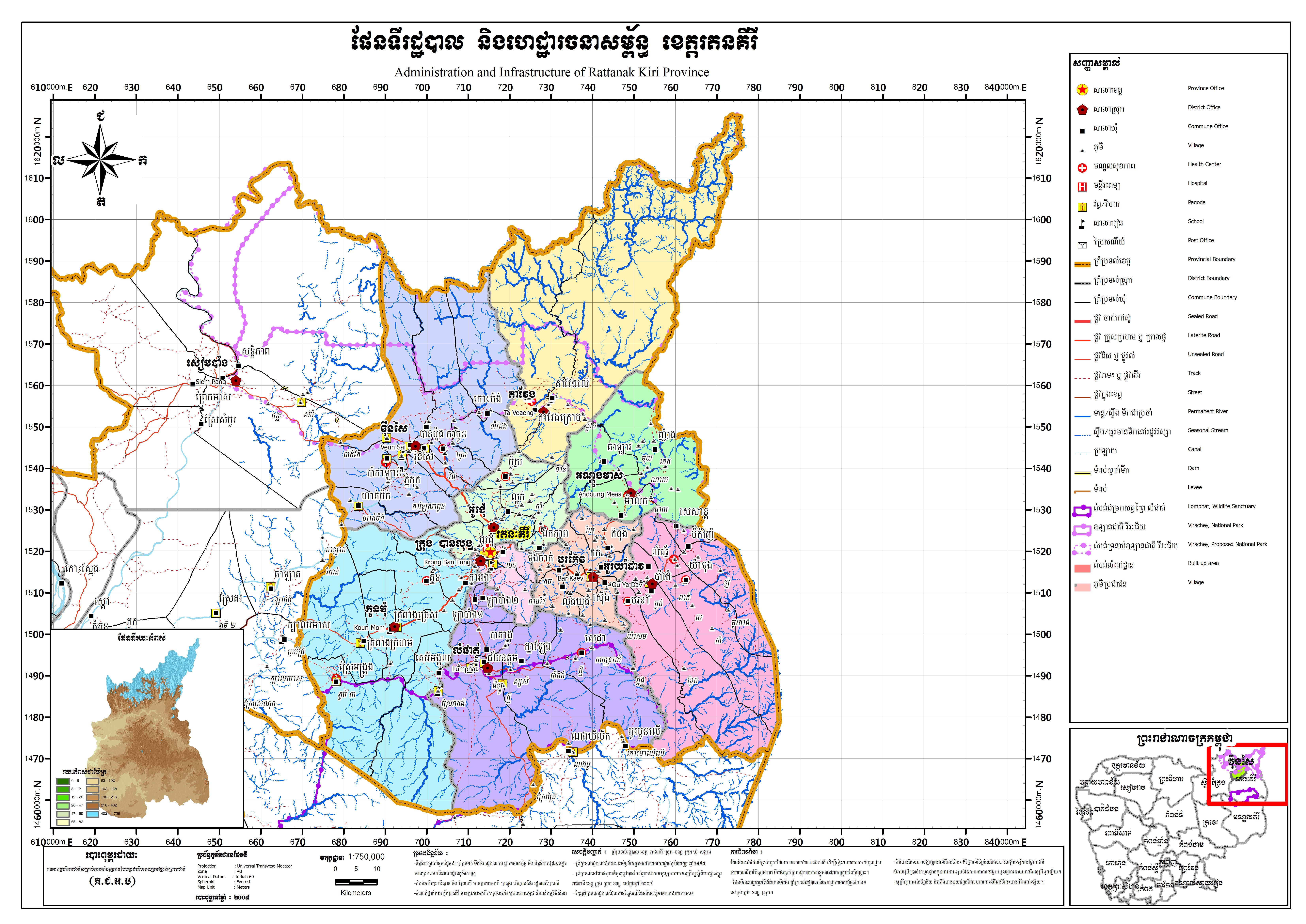 ផែនទីរដ្ឋបាល និងហេដ្ឋារចនាសម្ព័ន្ធ ខេត្តរតនគីរី