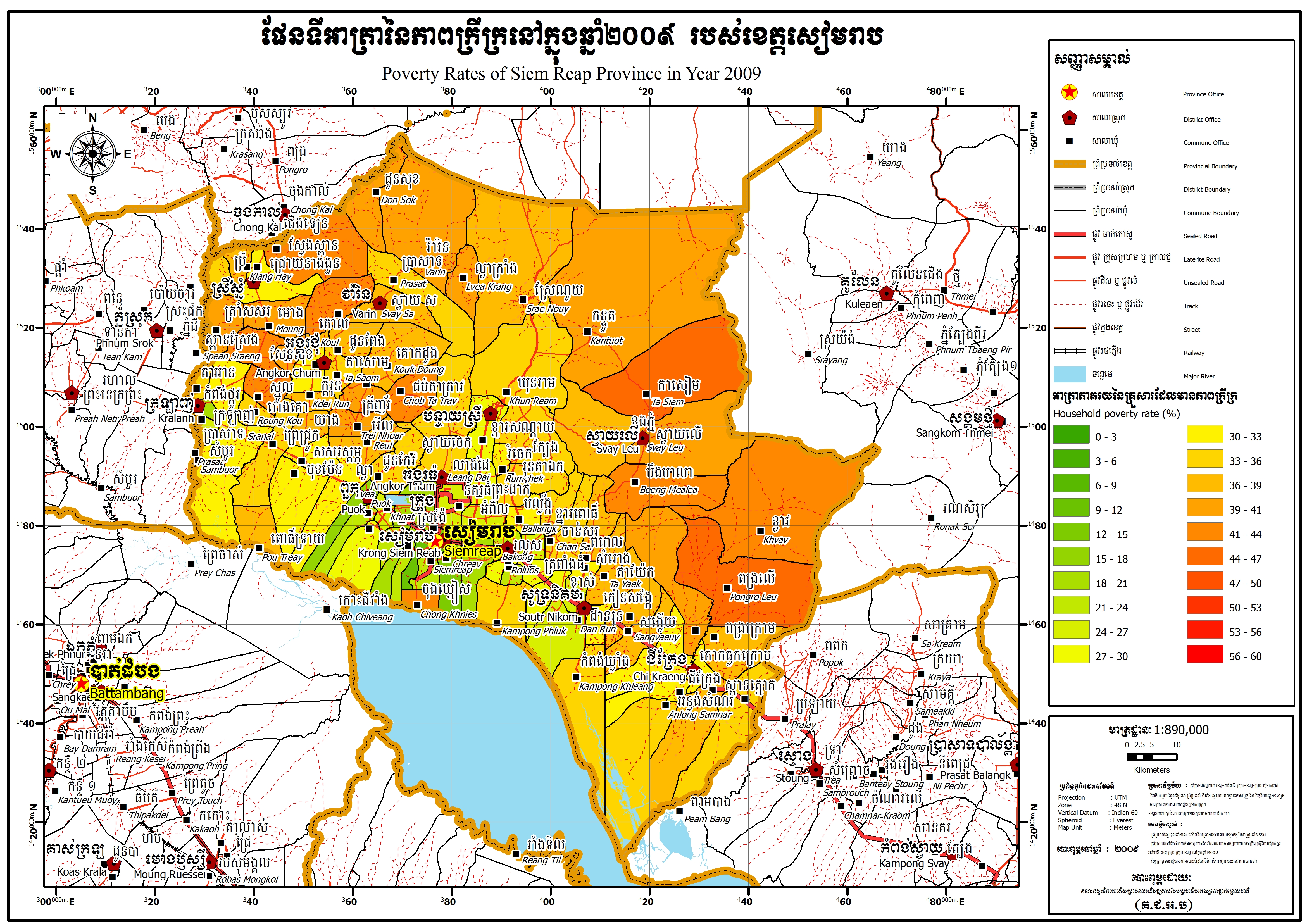 ផែនទីអាត្រានៃភាពក្រីក្រនៅក្នុងឆ្នាំ២០០៤ របស់ខេត្តសៀមរាប
