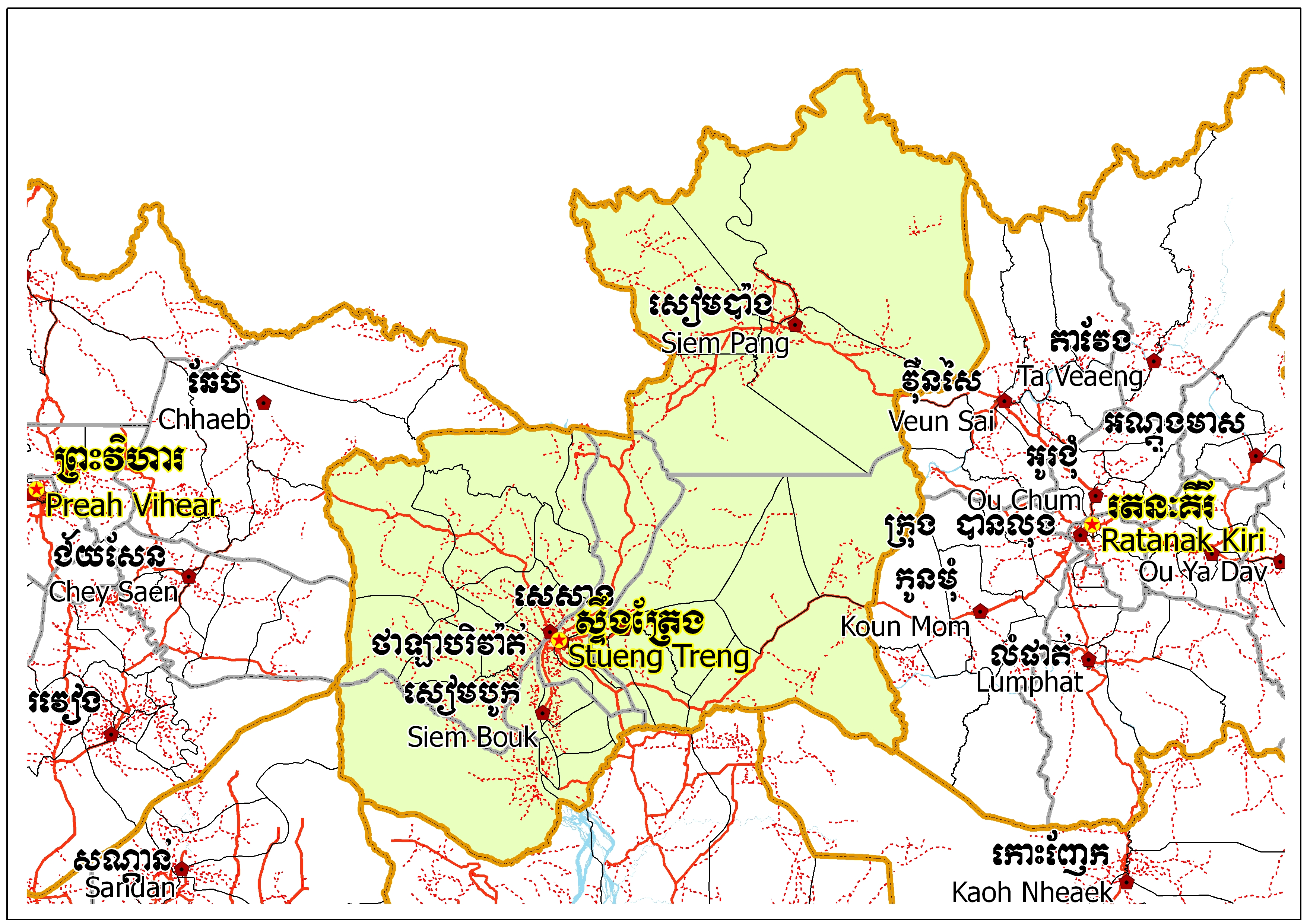 ផែនទីបំព្រួញ ខេត្តស្ទឹងត្រែង
