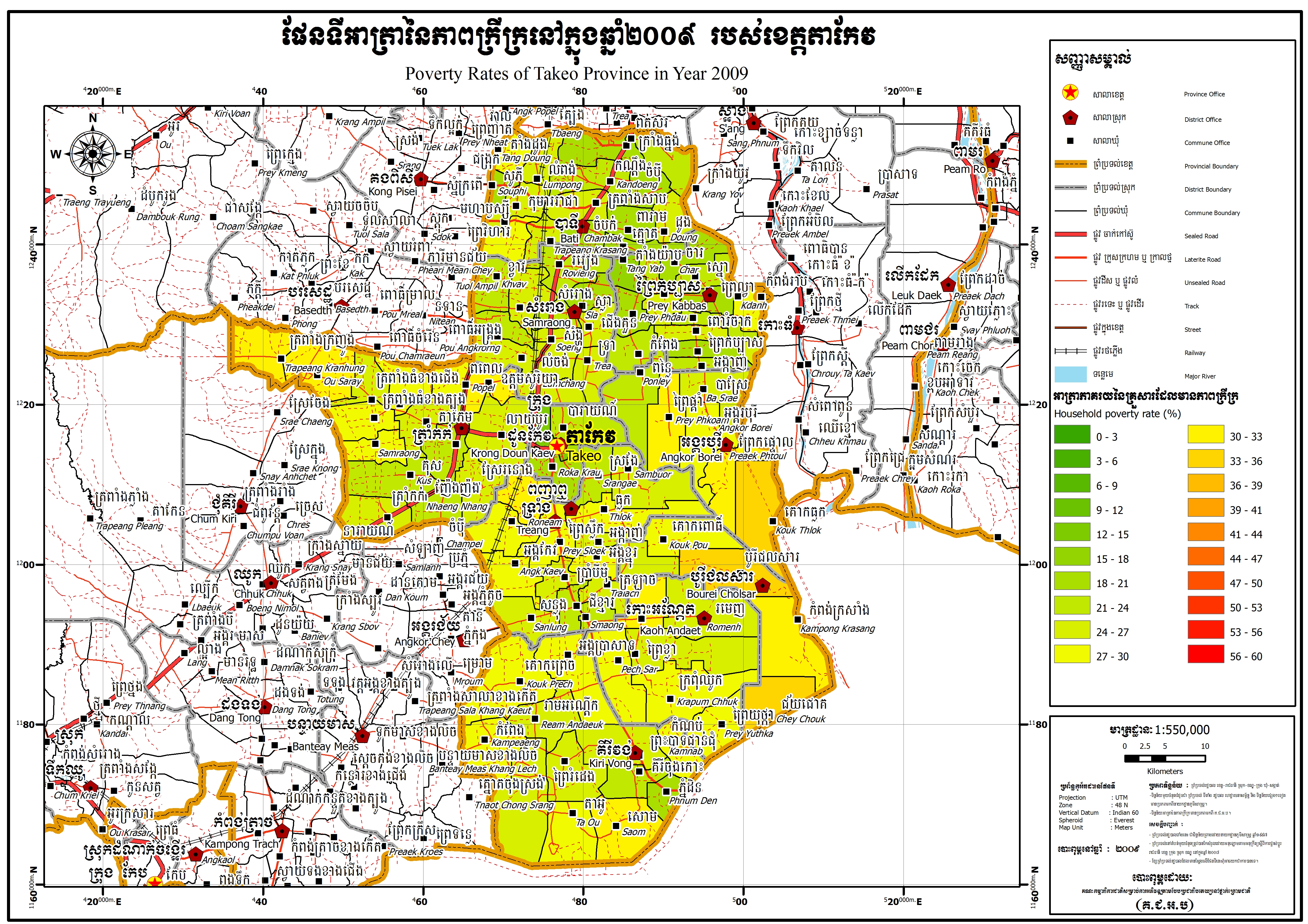 ផែនទីអាត្រានៃភាពក្រីក្រនៅក្នុងឆ្នាំ២០០៤ របស់ខេត្តតាកែវ