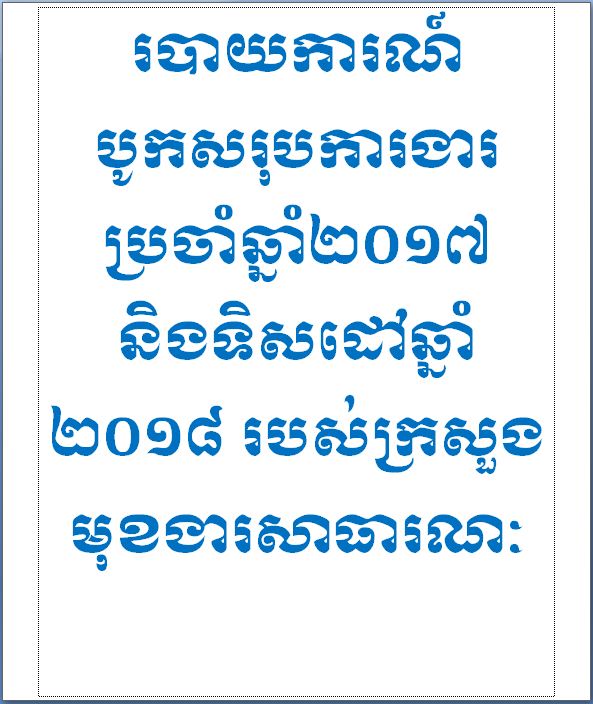 របាយការណ៍បូកសរុបការងារប្រចាំឆ្នាំ២០១៧ និងទិសដៅឆ្នាំ ២០១៨ របស់ក្រសួងមុខងារសាធារណៈ