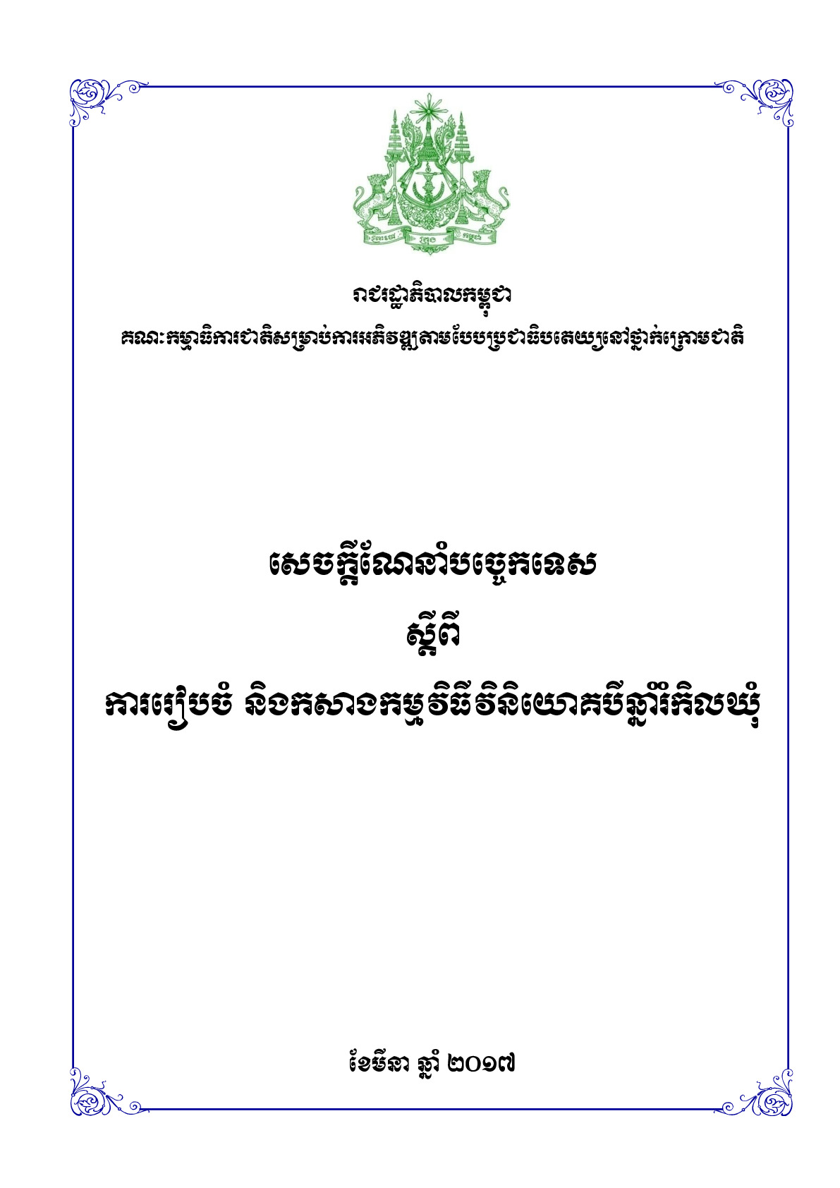 • ប្រធានបទ: សេចក្តីណែនាំ;បទដ្ឋានគតិយុត្ត