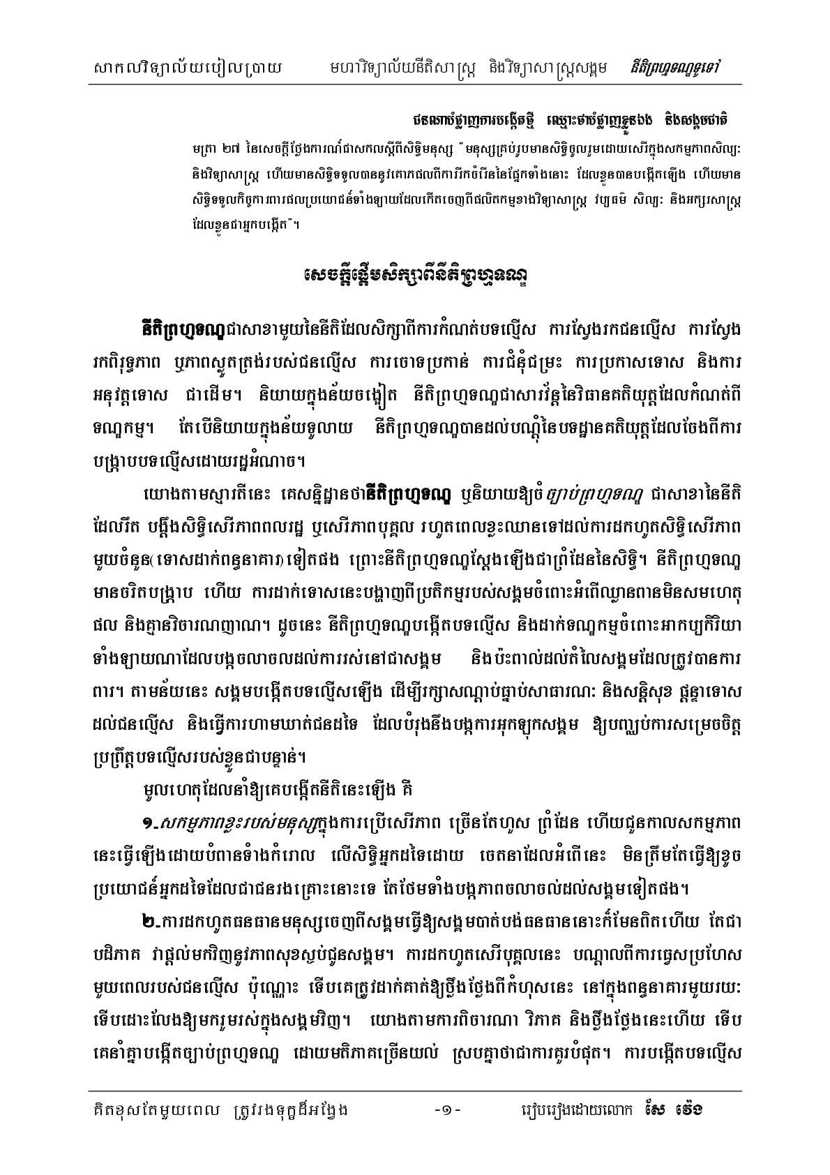 • ប្រធានបទ: សៀវភៅណែនាំ ; Manual ; នីតិព្រហ្មទណ្ឌ ; Criminal Law ; ច្បាប់