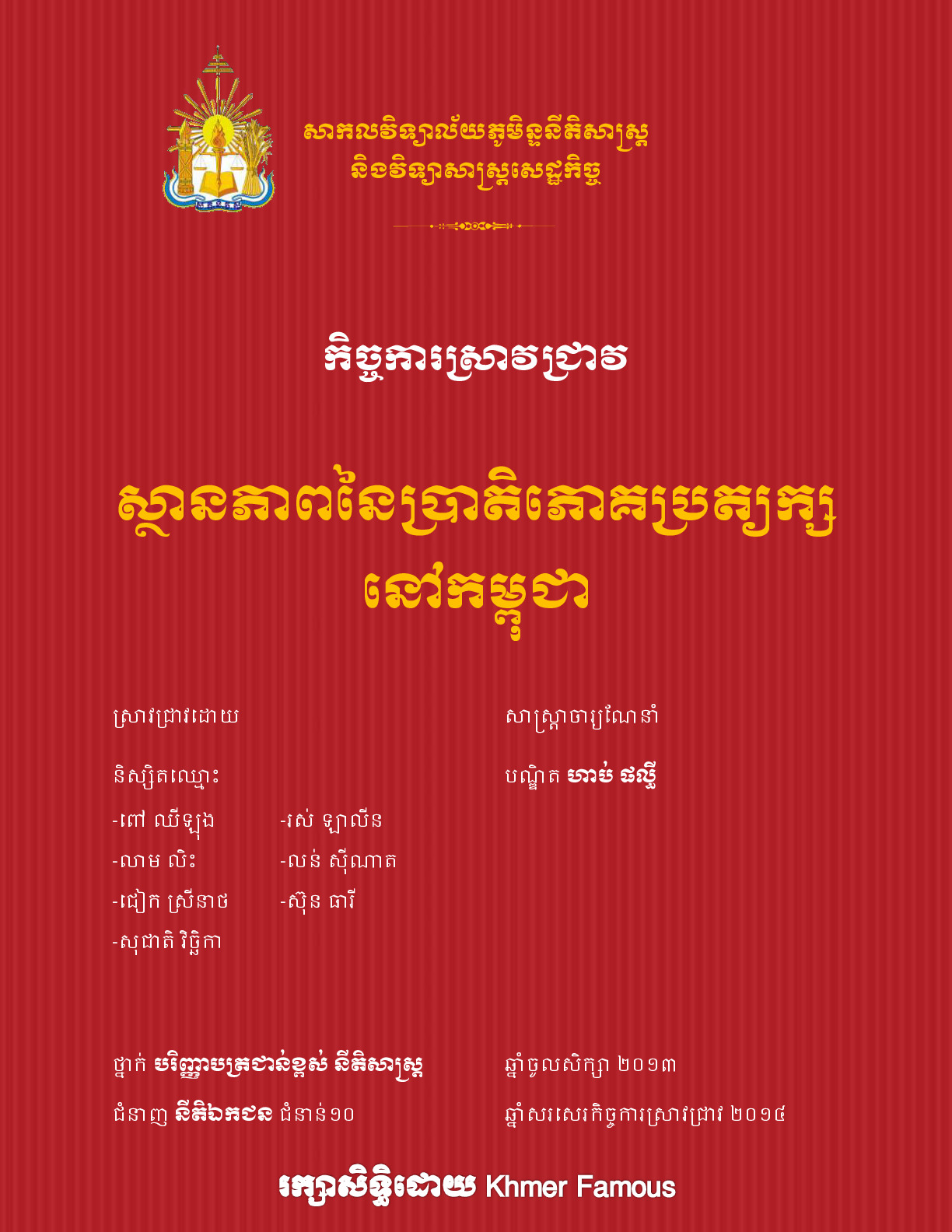 • ប្រធានបទ: ឯកសារសិក្សាស្រាវជ្រាវ ; Research papers