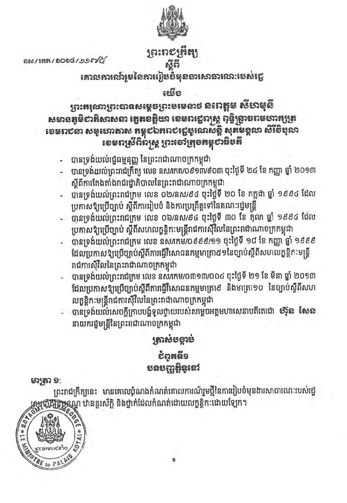 • ប្រភេទ: ព្រះរាជក្រឹត្យ