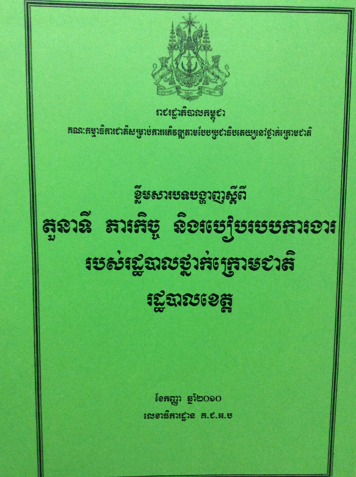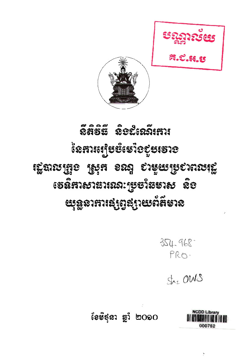 • ប្រធានបទ: សៀវភៅណែនាំ ; Manual ; រដ្ឋបាលខណ្ឌ ; Khan Administration
