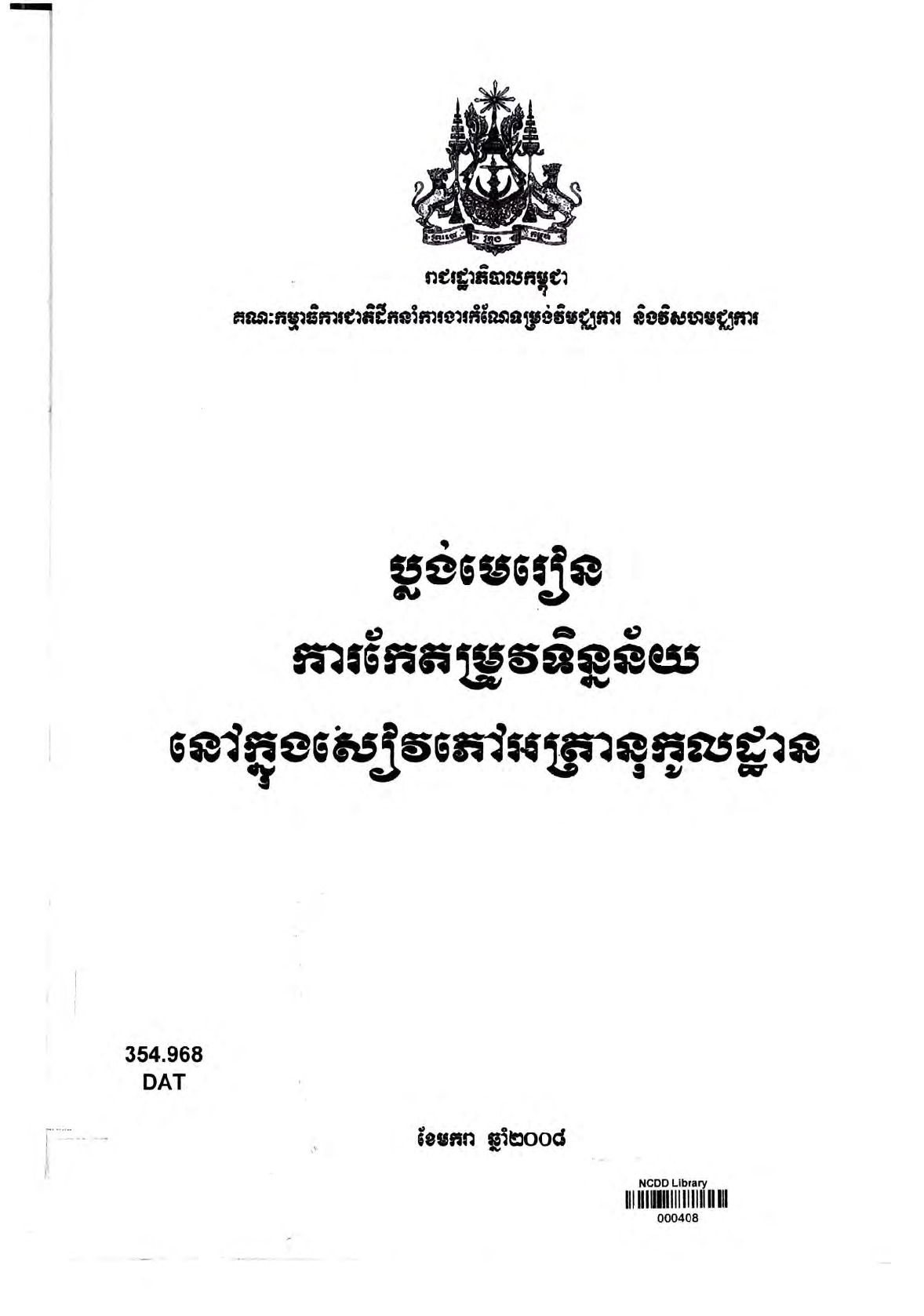 • ប្រធានបទ: លិខិតបទដ្ឋានគតិយុត្ត; Regulation; អនុក្រឹត្យ ; sub decree ; វិស័យដីធ្លី ; land sector