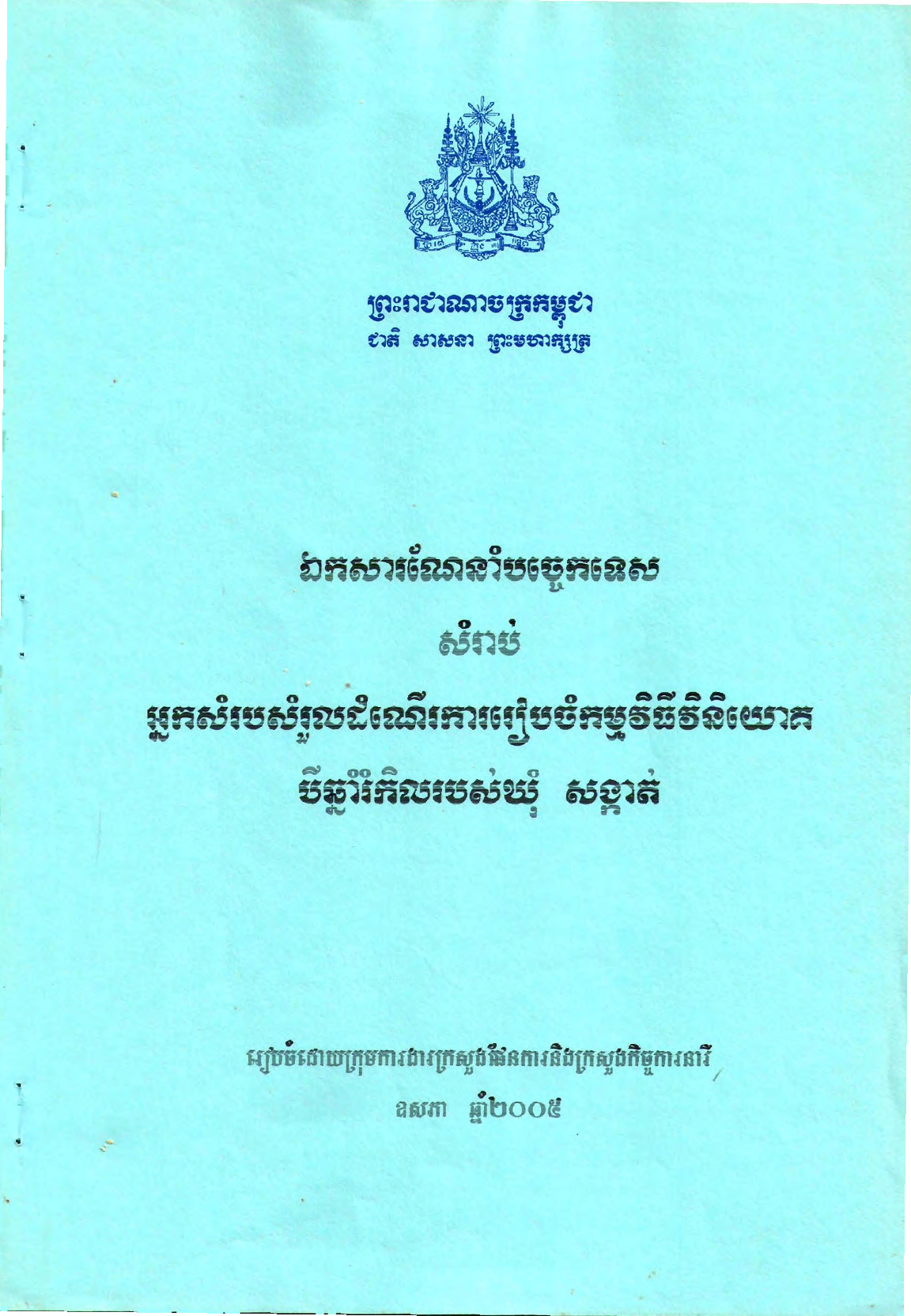 • ប្រធានបទ: សៀវភៅណែនាំ ; Manual ; ឃុំ សង្កាត់ ; Commune Sangkat ; កម្មវិធីវិនិយោគ៣ឆ្នំារំកិល ; Three Years Rolling Investment program